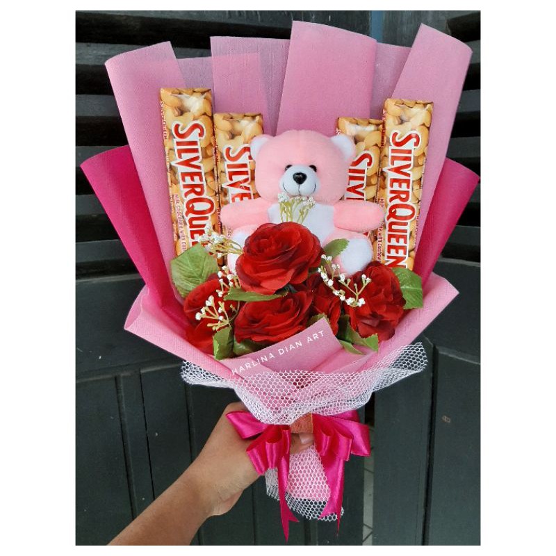 Jual Buket Bouquet Bucket Bunga Dan Snack Coklat Silverqueen Cantik Romantis Shopee Indonesia