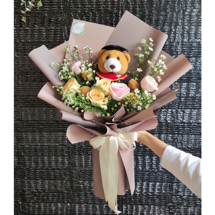 Jual Fresh Flower Bouquet With Graduation Doll Buket Bunga Segar Dengan Boneka Wisuda Shopee Indonesia